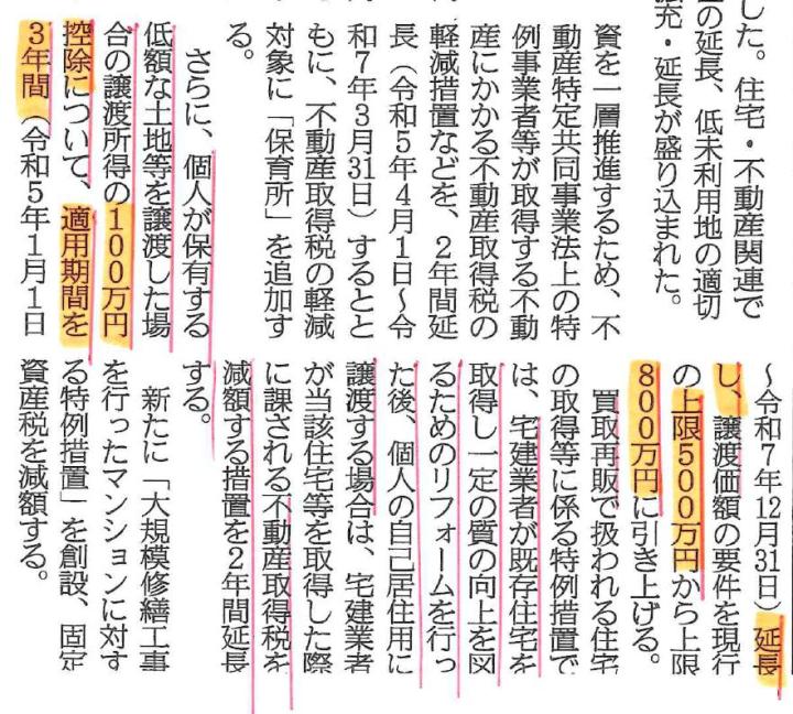 「低額な土地等を譲渡した場合の100万円控除」も延長しかつ